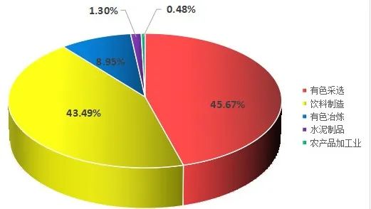 全县12户规模以上工业企业增加值完成 20.67 亿元,比上年增长 1.2%。其中:轻工业完成工业增加值9.08亿元,增长0.8 %,重工业完成增加值11.59亿元,增长1.6%。分行业来看:有色金属采选业增加值完成9.44亿元,同比增长1.4%,占规模以上工业企业增加值45.67%;有色金属冶炼业增加值完成1.85亿元,同比增长8.7%,占规模以上工业企业增加值8.95%;饮料制造业增加值完成8.99亿元,同比增长0.7%,占规模以上工业企业增加值43.49%;水泥制品制造业增加值完成0.27亿元,同比增长-34.1%,占规模以上工业企业增加值1.3%;农产品加工业增加值完成0.1亿元,同比增长13.6%,占规模以上工业企业增加值0.48%。
