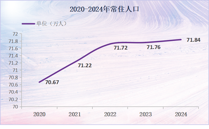 年末全区常住人口71.84万人,比上年末增加0.08万人。其中,城镇人口45.46万人,乡村人口26.38万人;常住人口城镇化率达63.28%,比上年增长1.38个百分点。全年出生人口0.5万人,出生率6.96‰;死亡人口0.46万人,死亡率为6.41‰。