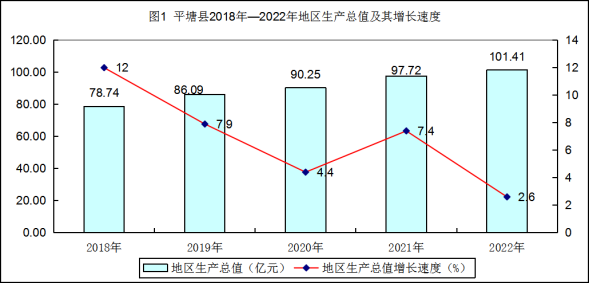 2022年全县地区生产总值101.41亿元,比上年增长2.6%,经济总量排全州第8位。分产业看,第一产业增加值27.55亿元,增长4%;第二产业增加值21.02亿元,增长4.4%;第三产业增加值52.84亿元,增长1.3%。第一产业、第二产业、第三产业增加值占生产总值的比重分别为27.2%、20.7%和52.1%。与上年相比,第一产业占生产总值的比重较上年上升了0.4个百分点,第二产业增加值占生产总值的比重上升了0.1个百分点,第三产业增加值占生产总值的比重下降了0.5个百分点。全县人均地区生产总值为43825元,比上年增加1885元。