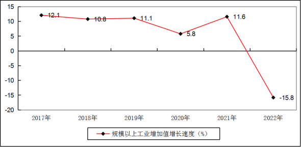 图4平塘县2017—2022年规模以上工业增加值同比增速