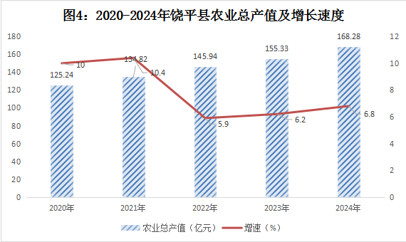 2024年,全县农林牧渔业总产值166.13亿元,同比增长6.6%。其中,农业产值89.89亿元,增长7.1%;林业产值1.28亿元,增长21.2%;牧业产值17.47亿元,下降2%;渔业产值46.97亿元,增长6.0%。农林牧渔专业及辅助性活动产值10.52亿元,增长24.1%。