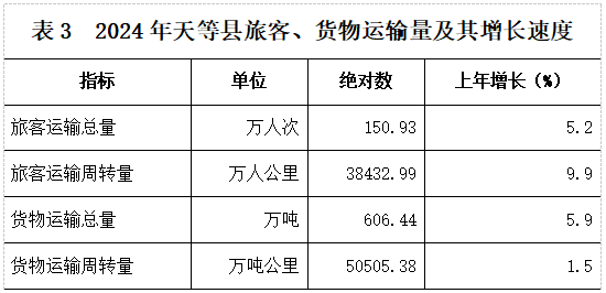 全年旅客运输总量150.93万人次,比上年增长5.2%。旅客运输周转量38432.99万人公里,增长9.9%。
