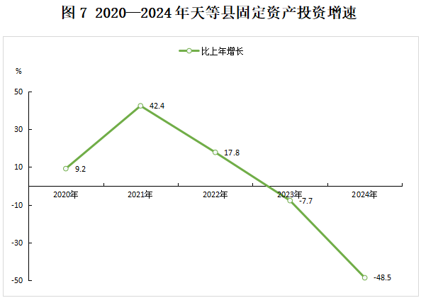全年固定资产投资(不含农户)比上年下降48.5%,其中,第一产业投资增长115.0%;第二产业投资下降44.4%,其中工业投资下降44.7%;第三产业投资下降63.6%。基础设施投资下降61.9%。民间固定资产投资增长38.0%。