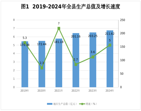 2024年是实现“十四五”规划目标任务的关键一年。全县坚持习近平新时代特色社会主义思想为指导,深入贯彻党的二十大和二十届二中、三中全会精神,认真落实党中央、国务院和区市政府部署,完整、准确、全面贯彻新发展理念,着力推动高质量发展,全县经济运行稳中有进、进中提质,高质量发展扎实推进。
