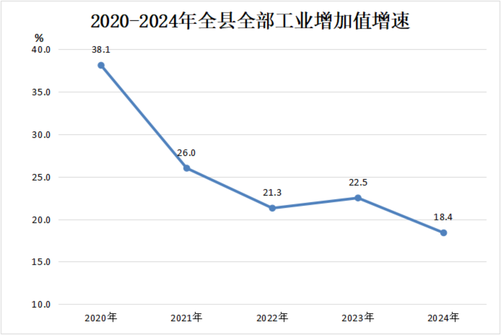 全年全县全部工业增加值254.12亿元,比上年增长18.4%。规模以上工业增加值增长18.6%。分门类看,采矿业增长46.3%,制造业增长18.7%,电力、热力、燃气及水生产和供应业增长5.3%。