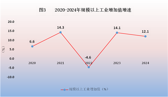 年末全区规模以上工业[4]企业121户,全年规模以上工业增加值同比增长12.1%。在规模以上工业中,分经济类型看,国有企业比上年增长205.0%,股份制企业比上年增长12.0%。分门类看,制造业增长4.1%,电力、热力、燃气及水生产和供应业增长225.7%。