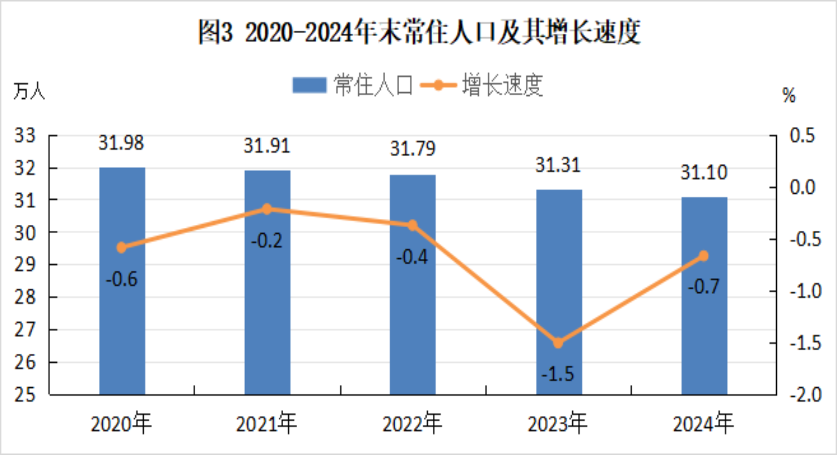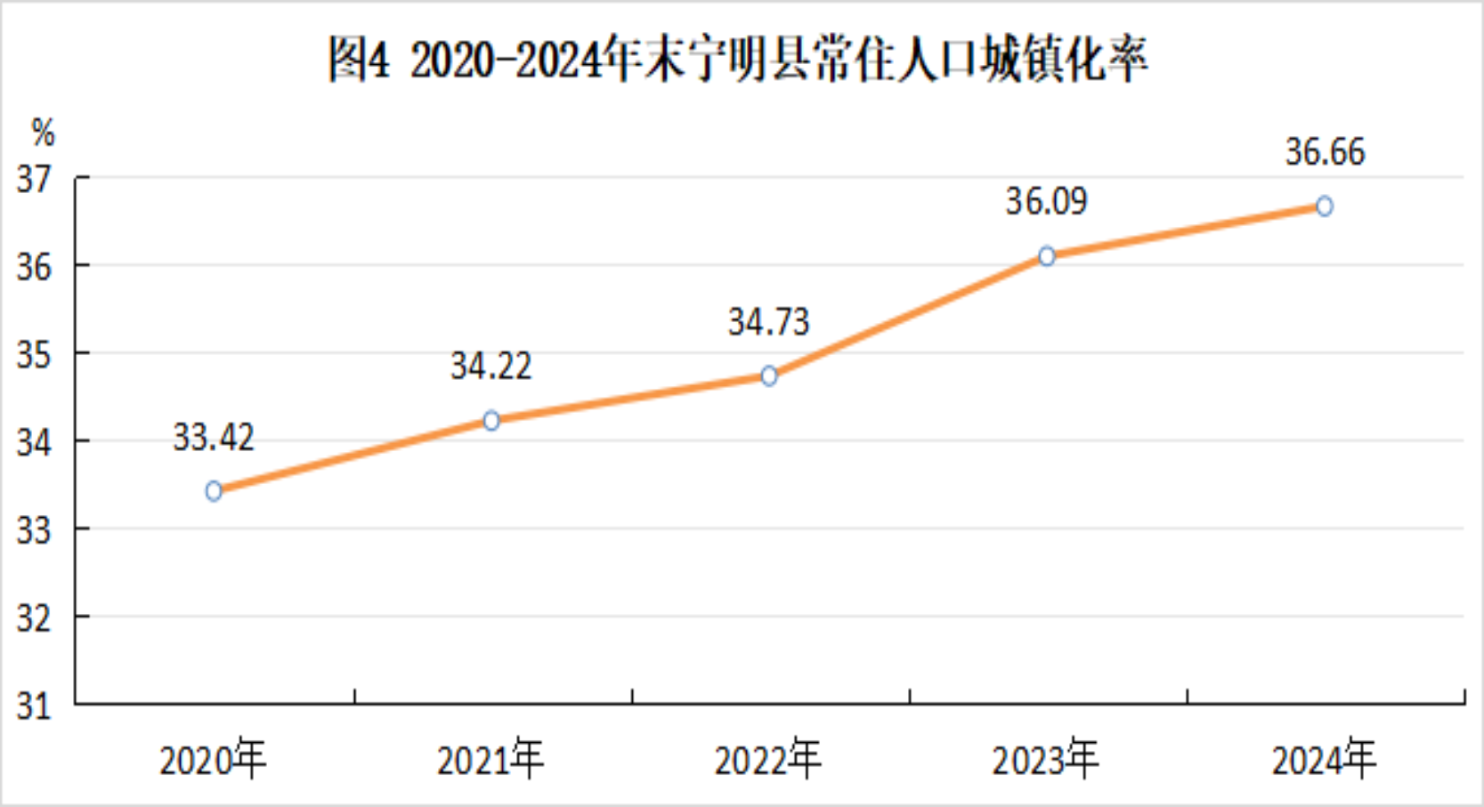 年末全县常住人口31.10万人,比上年末减少0.21万人,其中城镇人口11.40万人,占常住人口比重(常住人口城镇化率)为36.66%,比上年末提高0.57个百分点。2024年全年人口出生数2516人;出生率5.7‰;死亡人口3173人;死亡率7.19‰;自然增长率-1.49‰。