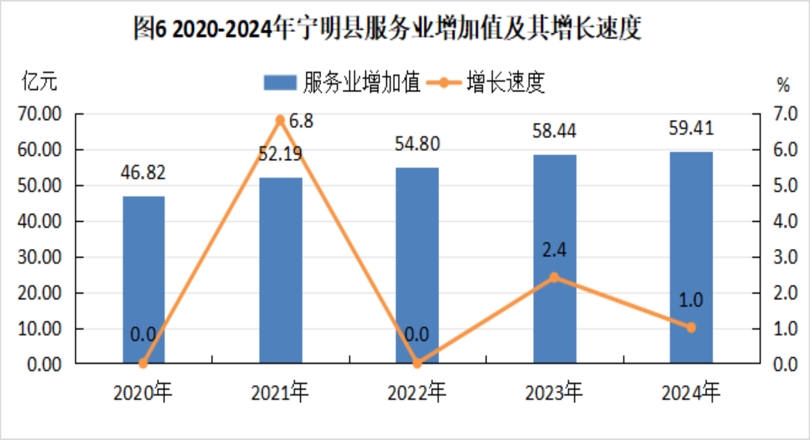 全年批发和零售业增加值11.12亿元,比上年同比下降3.9%;交通运输、仓储和邮政业增加值4.45亿元,同比增长4.7%;住宿和餐饮业增加值1.93亿元,同比增长0.1%;金融业增加值3.91亿元,同比增长2.2%;房地产业增加值7.52亿元,同比下降0.9%;其他服务业增加值28.38亿元,同比增长2.7%。规模以上其他营利性服务业企业营业收入同比增长13.8%。
