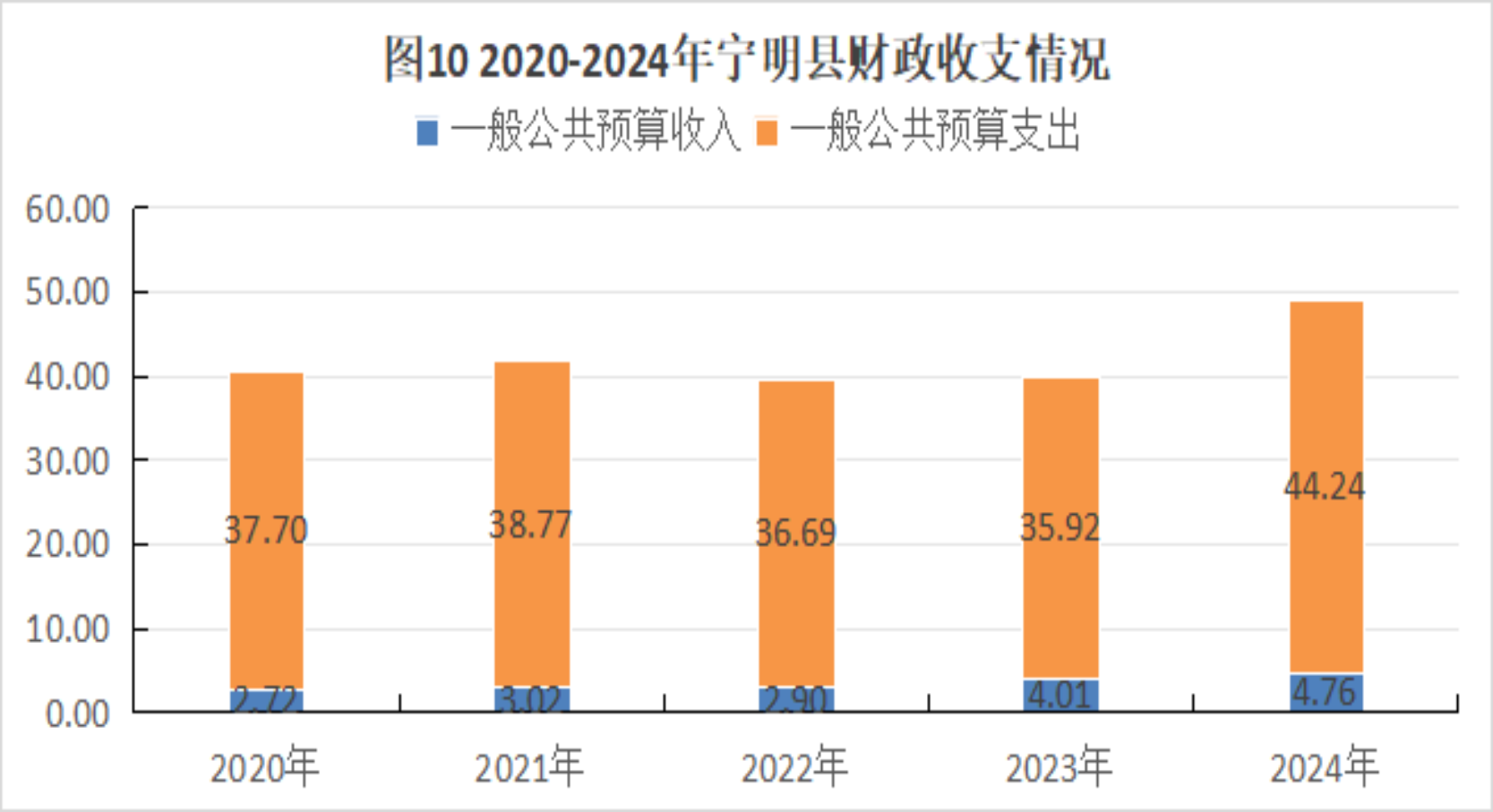 全年全口径财政收入8.14亿元,比上年增长5.4%;一般公共预算收入4.76亿元,比上年增长18.5%,其中非税收入2.09亿元,增长39.1%,非税占一般公共预算收入43.8%。一般公共预算支出44.24亿元,比上年增长23.2%,其中,13项民生支出36.47亿元,占一般公共预算支出的比重为82.4%。