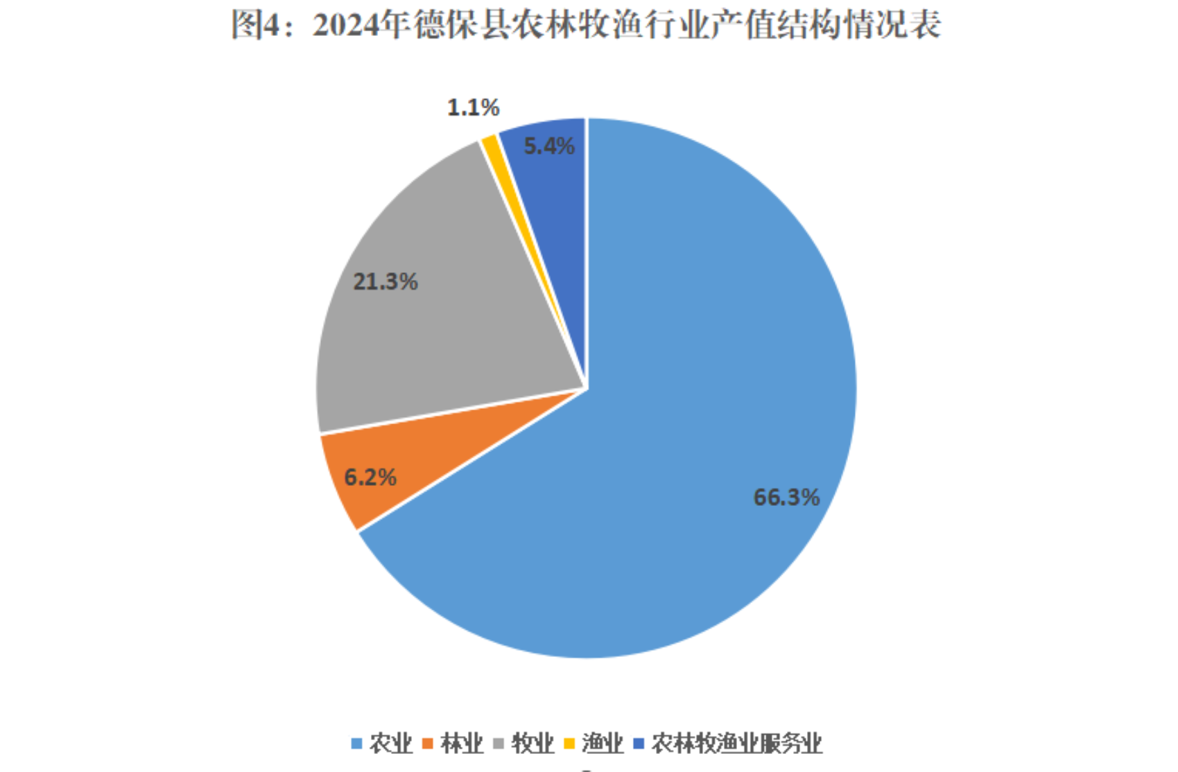 全年农林牧渔业总产值完成29.45亿元,比上年增长4.4%。其中农业产值19.54亿元,比上年增长5.4%;林业产值1.82亿元,增长9.7%;牧业产值6.29亿元,增长0.1%;渔业产值0.31亿元,增长4.9%;农林牧渔专业及辅助性活动产值1.50亿元,增长4.4%。