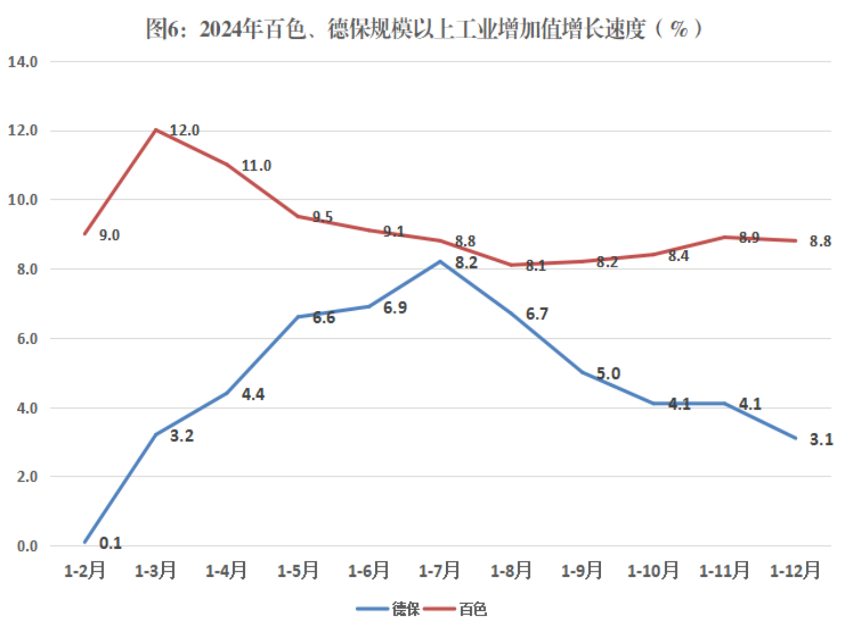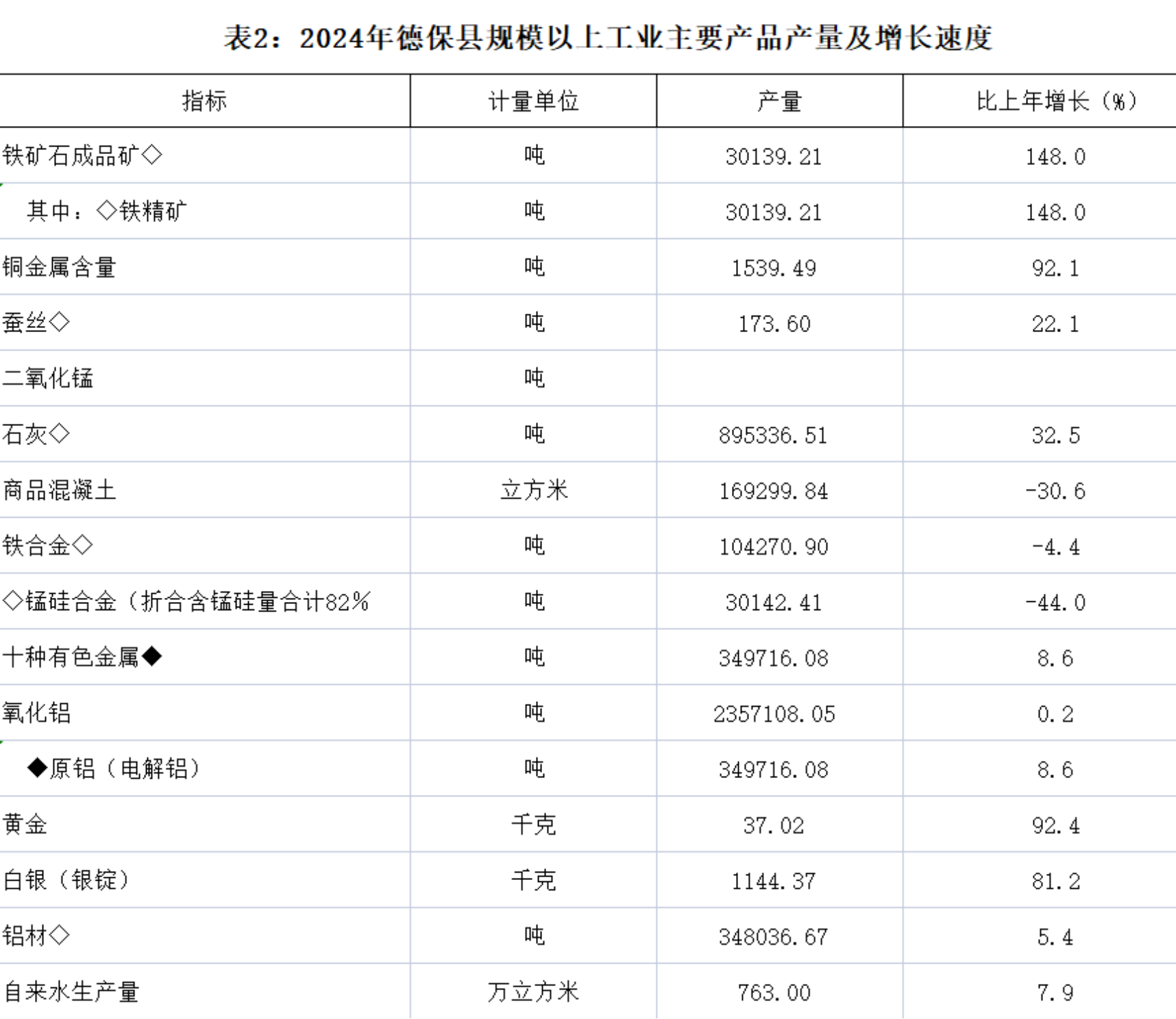 全年规模以上工业中,黑色金属矿采选业增加值增长298.9%,有色金属矿采选业增加值增长129.8%,纺织业增加值增长17.4%,化学原料和化学制品制造业增加值下降30%,非金属矿物制品业增加值增长11.7%,黑色金属冶炼及压延加工业增加值下降8.3%,有色金属冶炼及压延加工业增加值增长9.9%,计算机、通信和其他电子设备制造业增加值下降31.4%,废弃资源综合利用业增加值增长1.5%,电力、热力生产和供应业增加值下降11.4%、水生产和供应业增加值增长1.4%。
