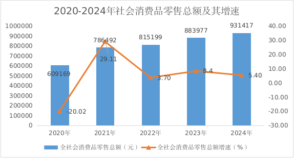 2024全年实现社会消费品零售总额93.14亿元,同比增长5.4%。其中限额以上单位实现消费品零售总额23.52亿元,同比增长17.7%,限额以下单位实现消费品零售总额69.63亿元,同比增长1.8%。分行业来看,限上批发业实现销售额22.75亿元,同比增长21.64%;限上零售业实现销售额20.18亿元,同比增长19.52%;限上住宿业实现营业额1.03亿元,同比增长14.38%;限上餐饮业实现营业额0.92亿元,同比增长20.75%。