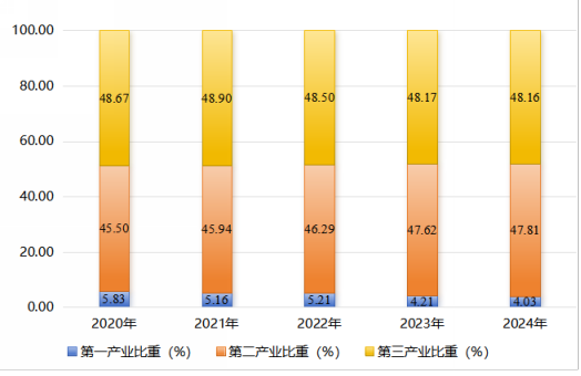 图2:2020-2024年三次产业增加值占地区生产总值比重