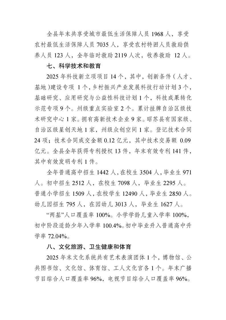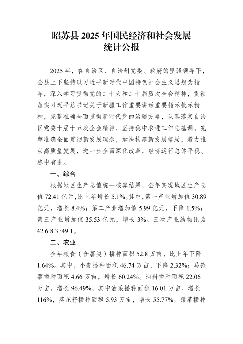 选择区域:伊犁哈萨克自治州>昭苏县察布查尔锡伯自治县巩留县霍城县霍尔果斯市奎屯市尼勒克县特克斯县新源县伊宁市伊宁县昭苏县> 2025年昭苏县统计公报列表 - 2025 - 2024 - 2023 - 2022 - 2021 - 1999