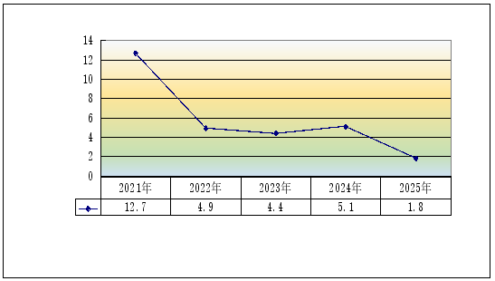 图4 2021-2025年全县工业增加值增长速度