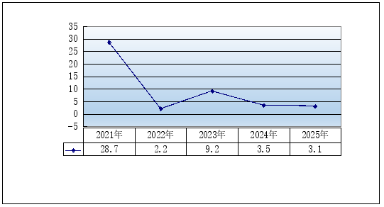 图5 2021-2025年全县社会消费品零售总额增长速度