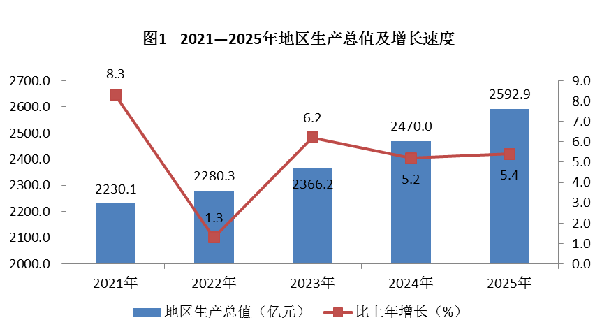2025年,全区坚持以习近平新时代中国特色社会主义思想为指导,全面贯彻落实党的二十大和二十届历次全会精神,完整准确全面贯彻新发展理念,深化“五子”联动服务和融入新发展格局,坚持稳中求进工作总基调,统筹发展和安全,扎实推动区域高质量发展,全区经济稳中有进,新质生产力培育壮大,人民生活稳步提高,社会事业有序推进,“十四五”规划顺利完成。